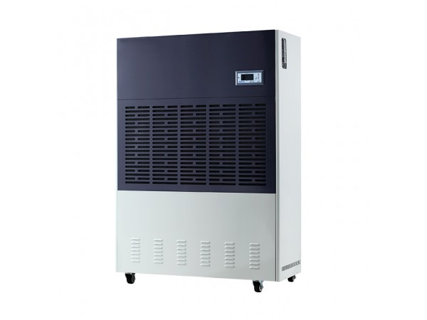工业用除湿机通过风机将潮湿空气抽入机器内部,通过压缩机制冷将蒸发器降温至露点以下,潮湿空气经过蒸发器在表面凝结成水,汇集至接水盘后,流入水箱中,干爽空气经冷凝器重新加热由出风口排出,这样不断循环将室内湿度降低。